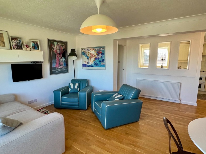 The flat is well presented and benefits from double glazed windows throughout and full gas fired central heating. The sitting/dining room is light and spacious with access onto the balcony at the front and openings through to the kitchen at the rear of the flat to allow light from both sides. The kitchen is well appointed with a range of built-in appliances and a modern gas fired combi boiler in a cupboard to one end.